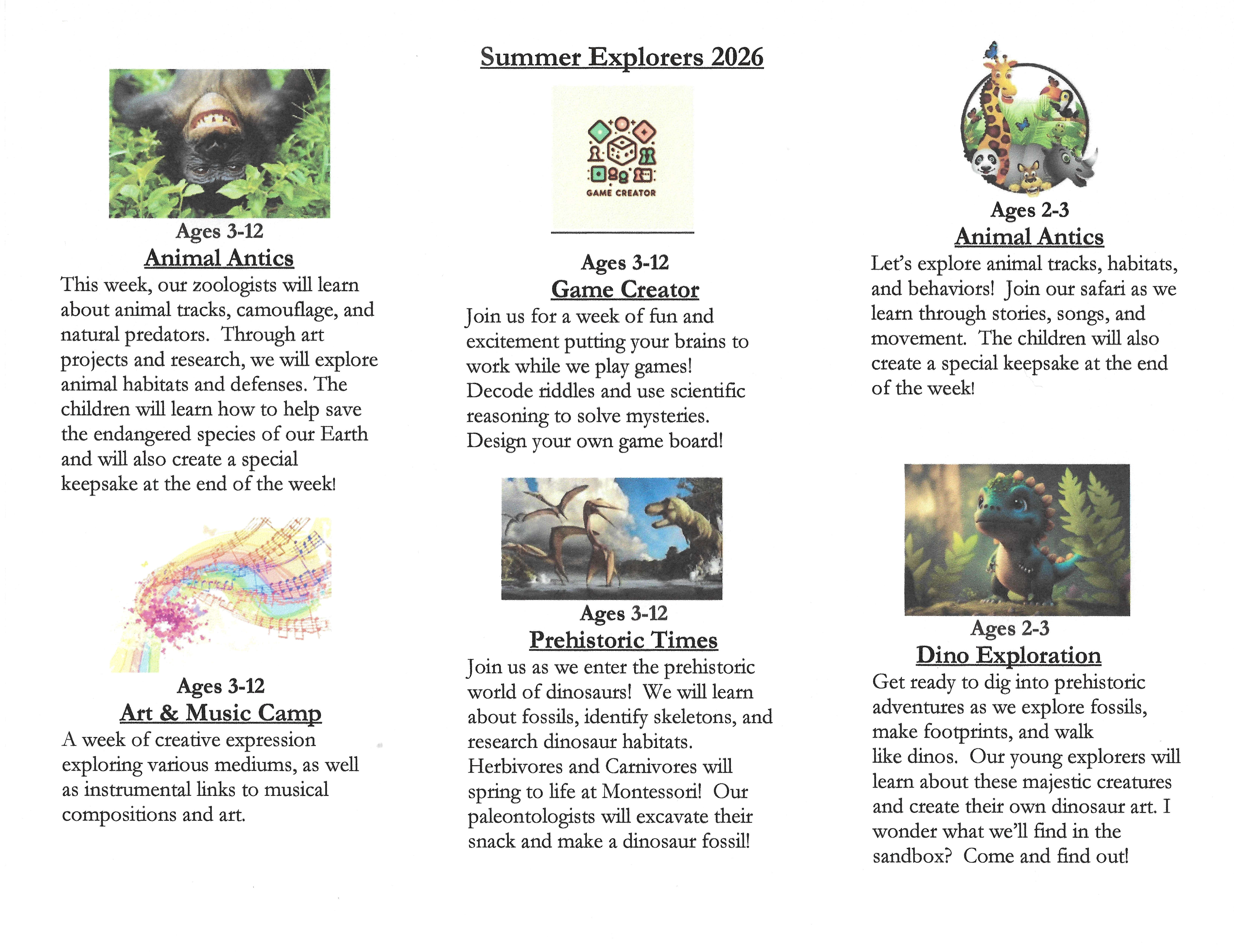 Please click on the links below for our Summer Explorers application and enrollment contract.